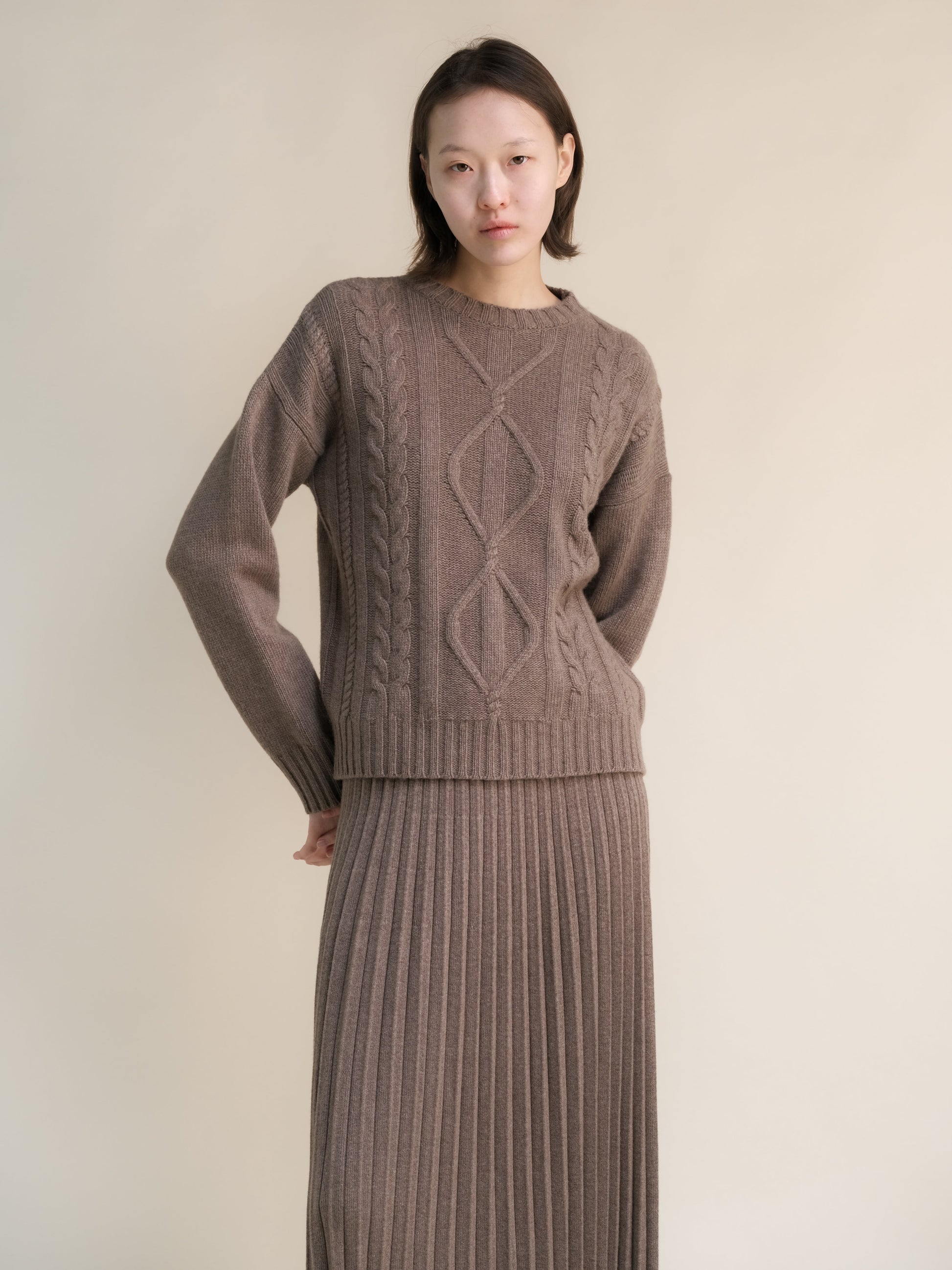 This classic cable knit sweater adds a touch of leisure-time chic to your wardrobe. It features an oversized ribbed neckline, hem, and cuffs, with plain knit sleeves and a beautifully textured cable knit body. Crafted in our signature luxurious cashmere mix—developed through extensive testing of yarn compositions—it’s incredibly smooth and soft against the skin, while ensuring long-lasting performance and wearability.