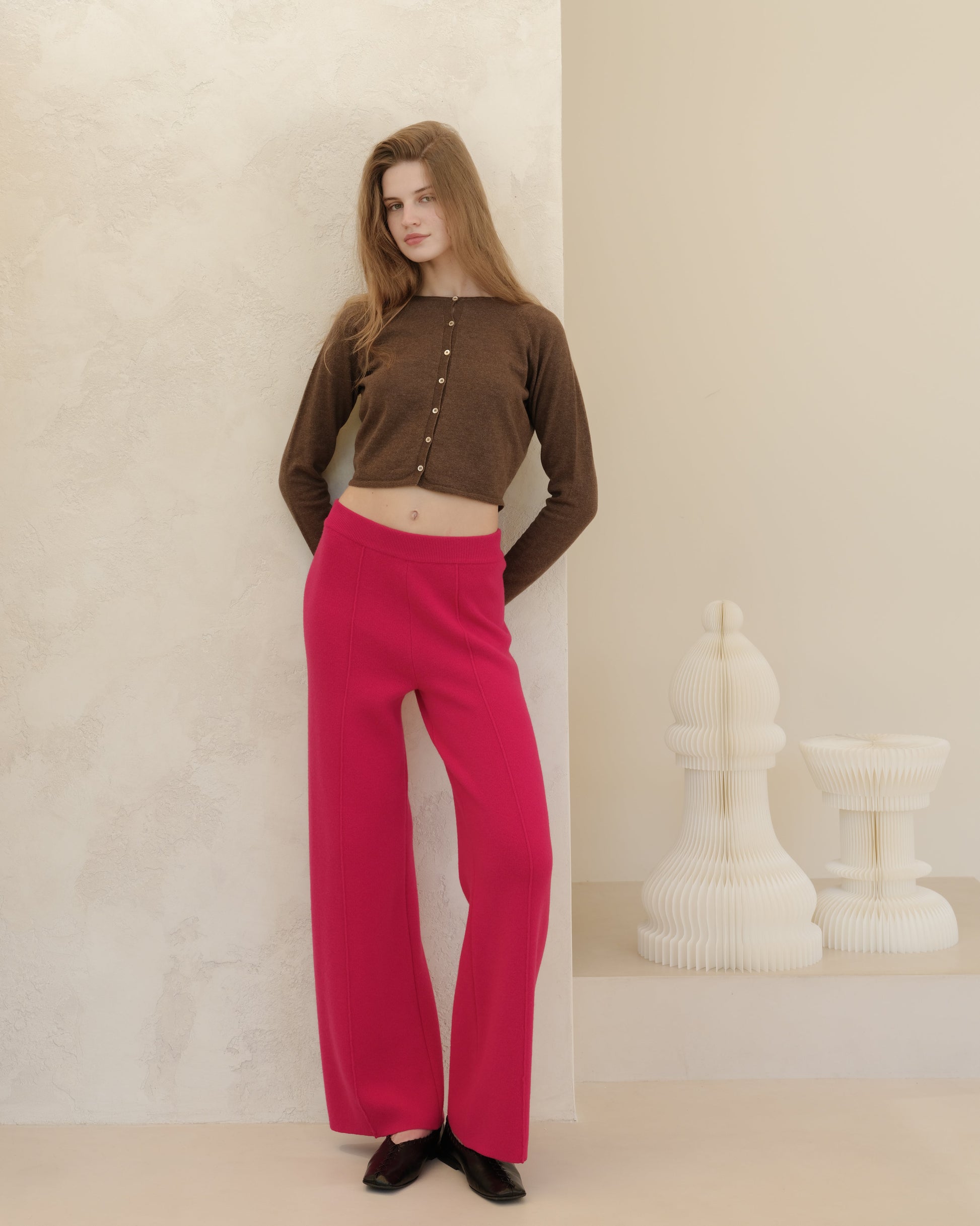 Details – Cropped plain knit body – Raglan sleeves – Ribbed neckline, cuffs, and placket – Mother-of-pearl buttons – Regular fit – Entirely made in Italy – 40% wool, 30% viscose, 20% polyamide, 10% cashmere