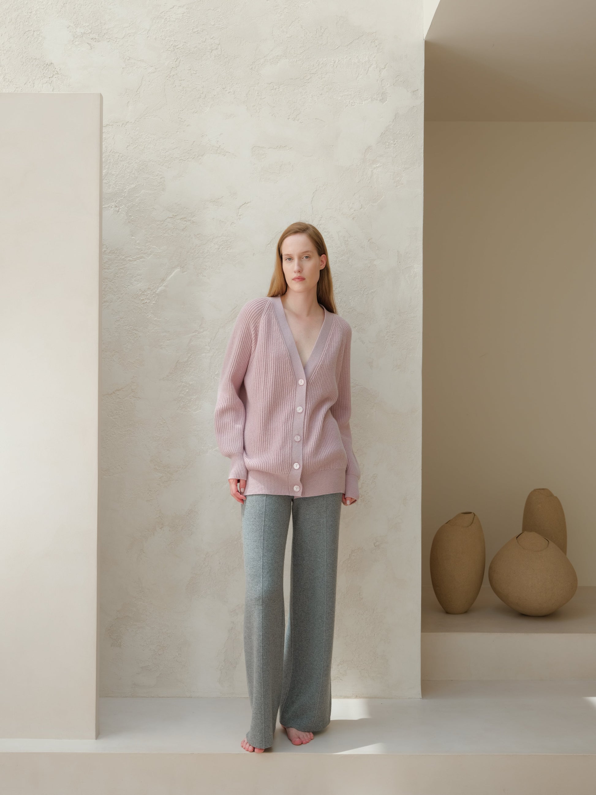 A soft cardigan crafted in ribbed knit with raglan shoulders. Its relaxed silhouette wraps the body with warmth and comfort. Tone-on-tone buttons enhance the essential look, making it ideal for everyday wear.