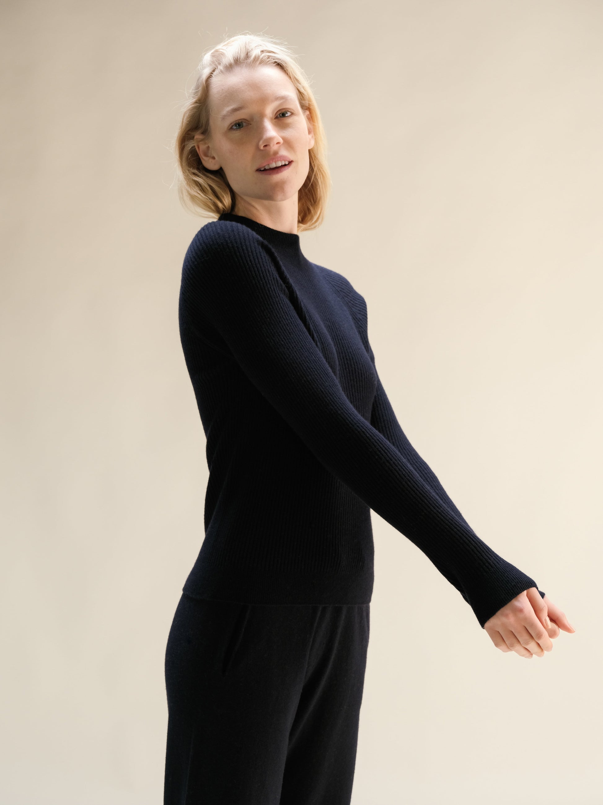 Ribbed mock neck sweater crafted with 3D-Knit technology for a seamless, precise fit. The regular-slim silhouette flatters the figure, while the high neckline adds comfort and warmth. Ideal for layering or wearing on its own, from casual moments to more polished looks.