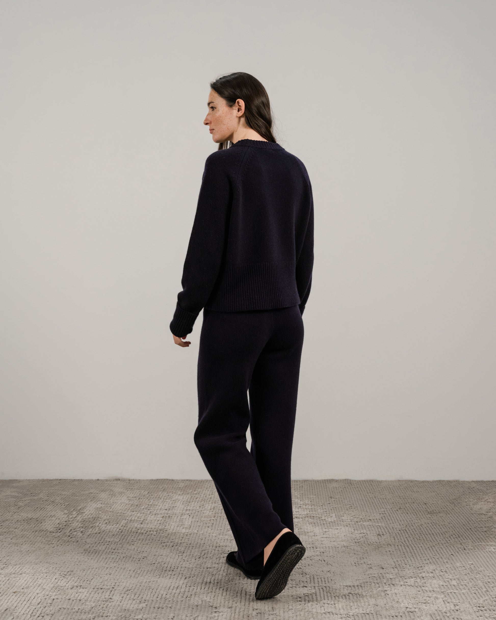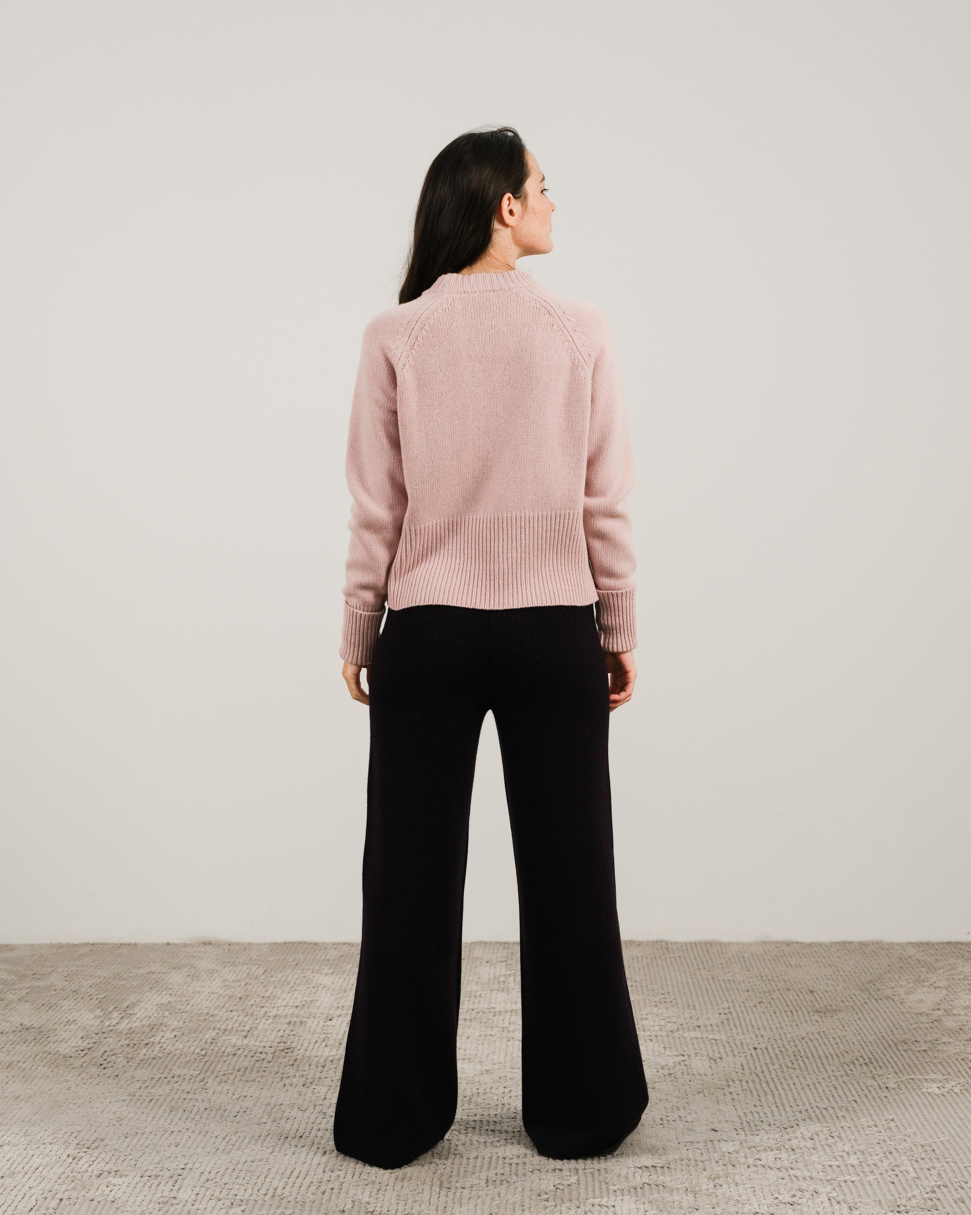 Details – Slightly cropped body and elongated sleeves with roll-up cuffs – Raglan sleeves – Ribbed neckline, cuffs and hem – Plain knit body – Regular fit – Entirely made in Italy – 40% wool, 30% viscose, 20% polyamide, 10% cashmere