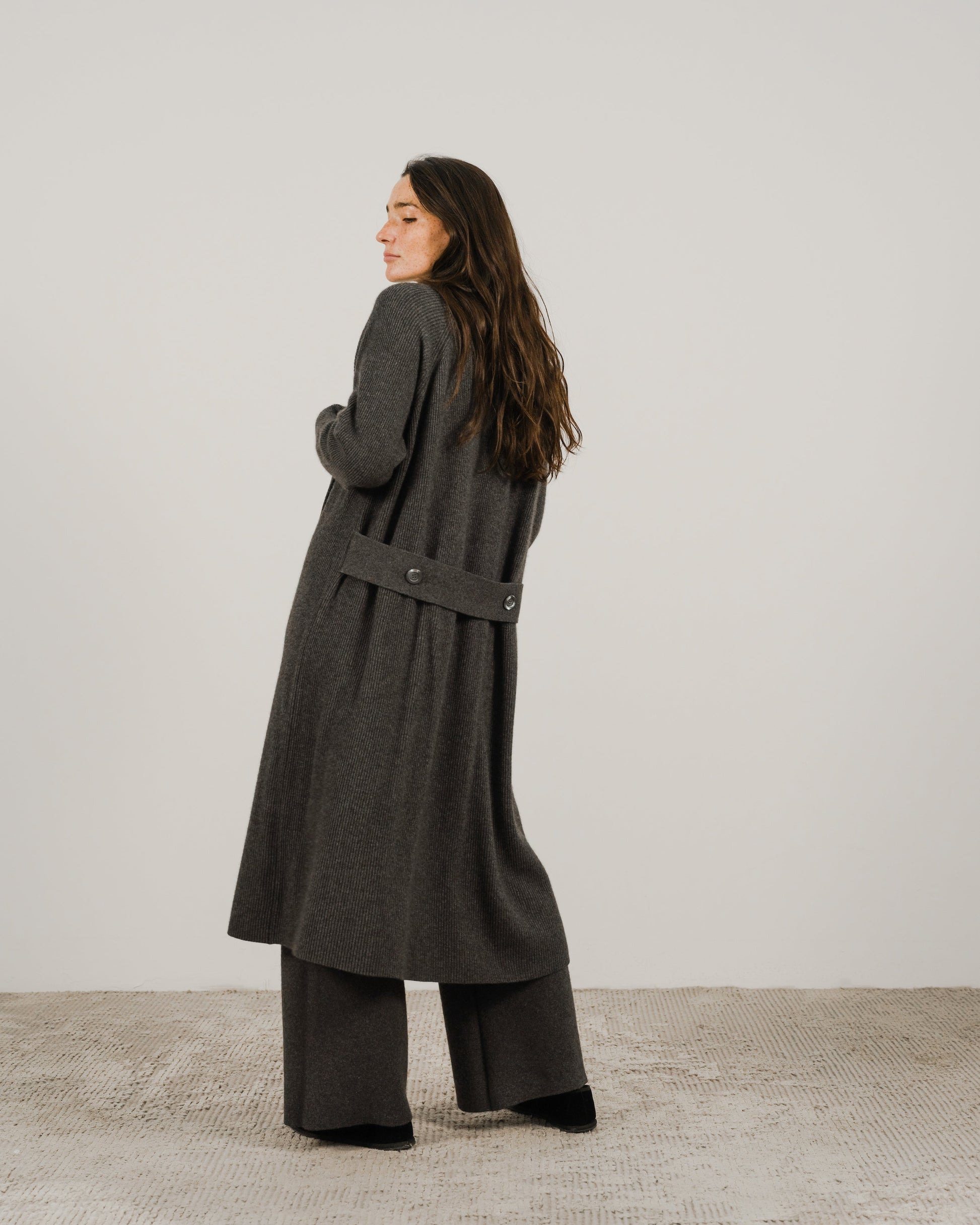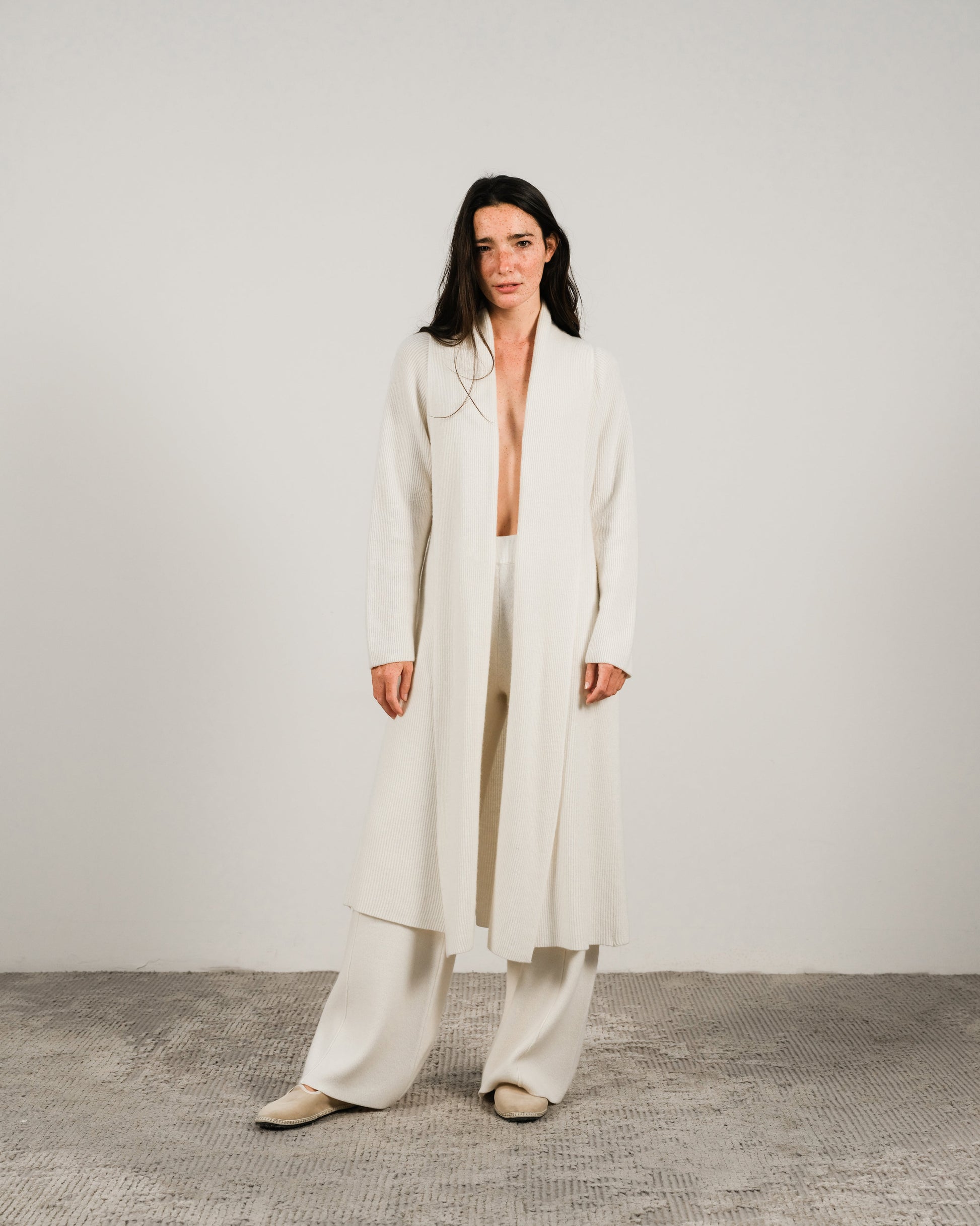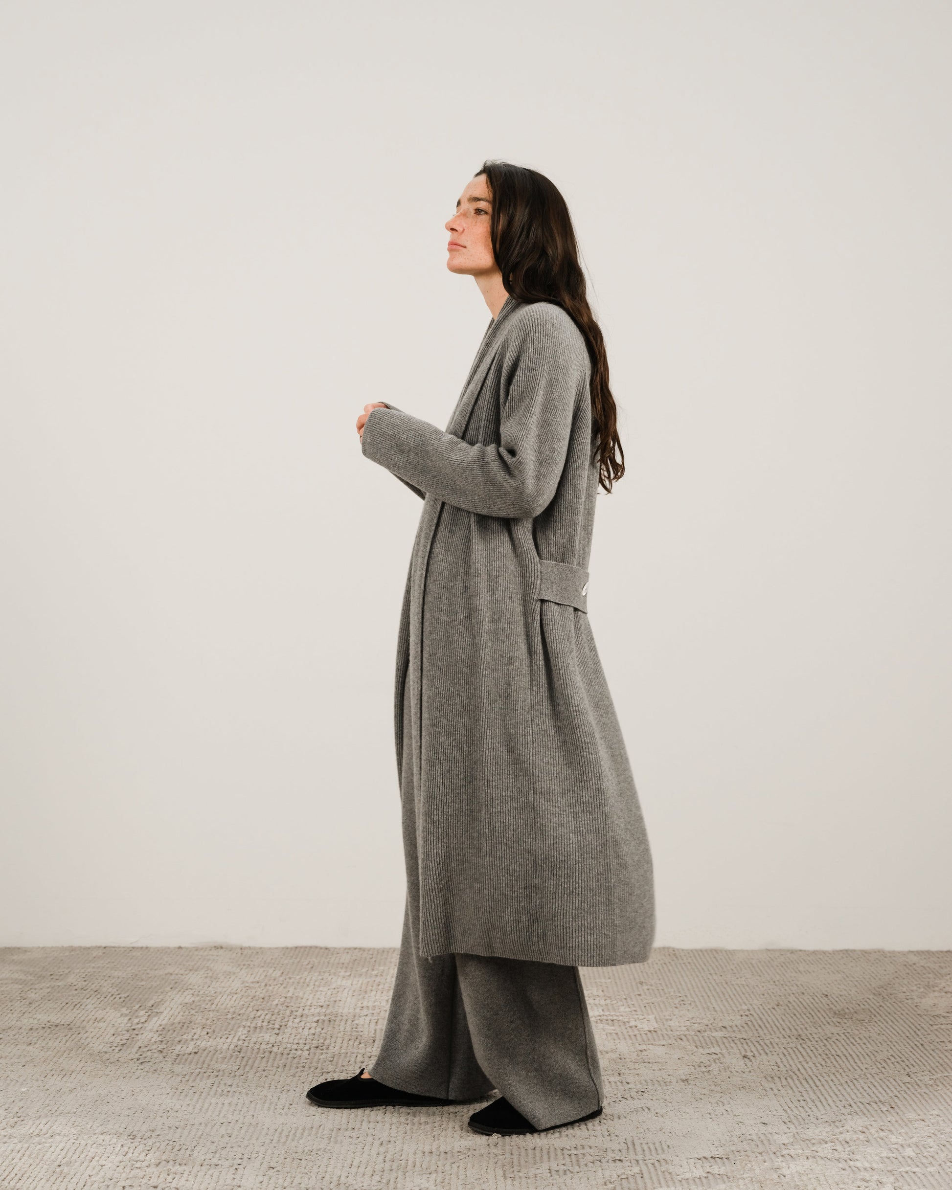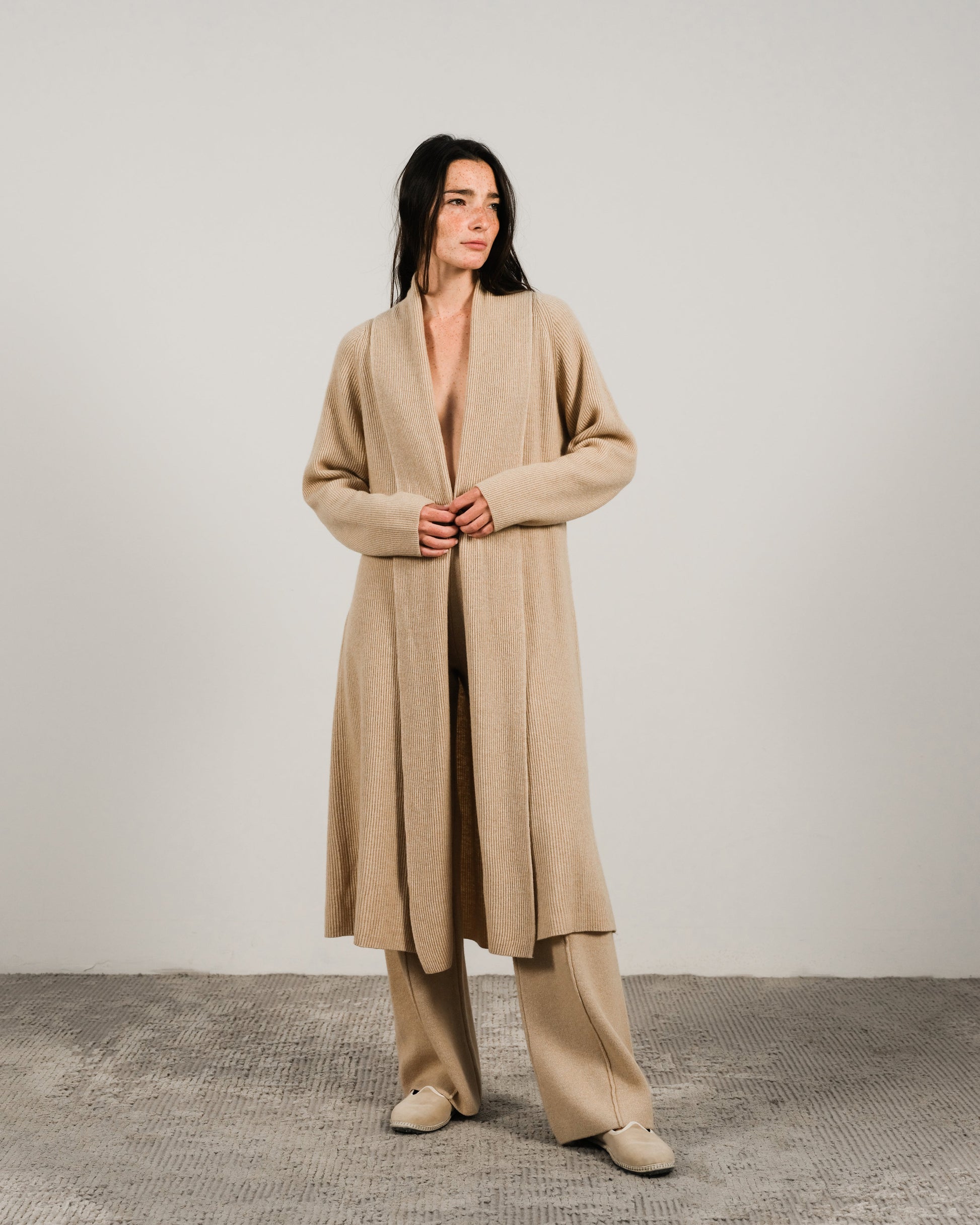 A cocooning, longline cardigan designed for elevated comfort and ease.