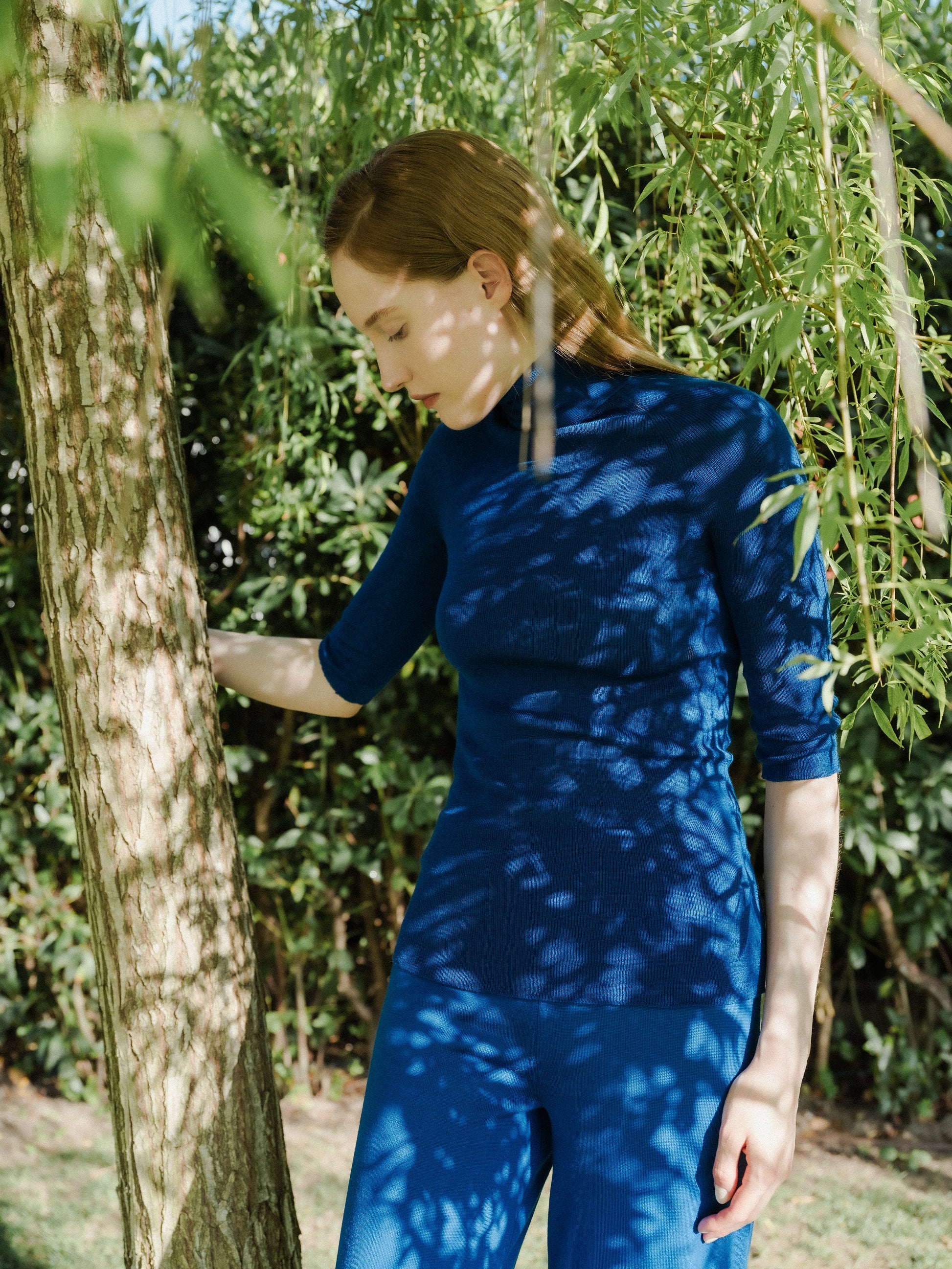 Extra Fine Merino Wool 3/4 Sleeve Ribbed Turtleneck (3D-Knit)