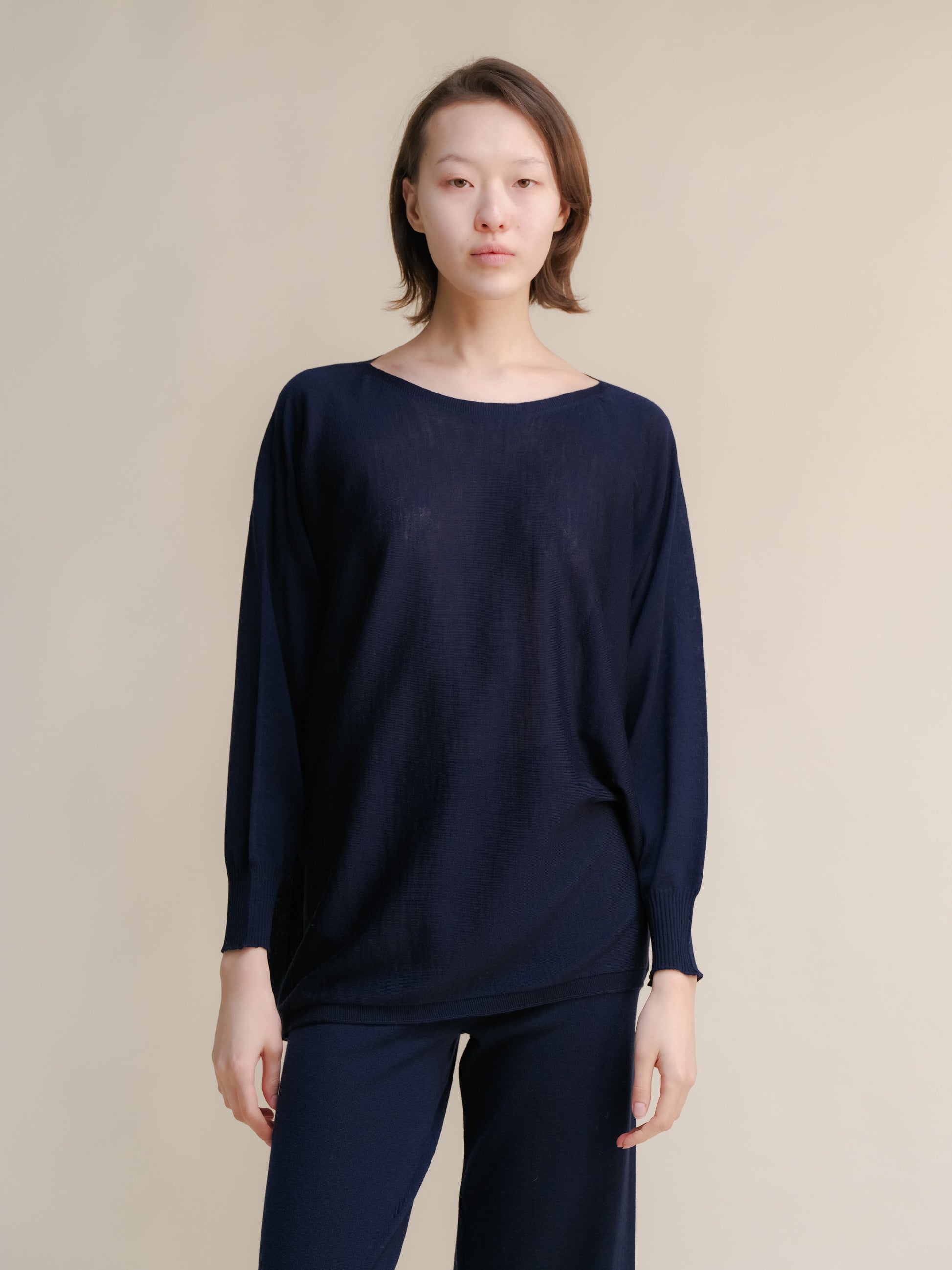 Extra Fine Merino Wool Boat Neck Oversized Sweater (3D-Knit)