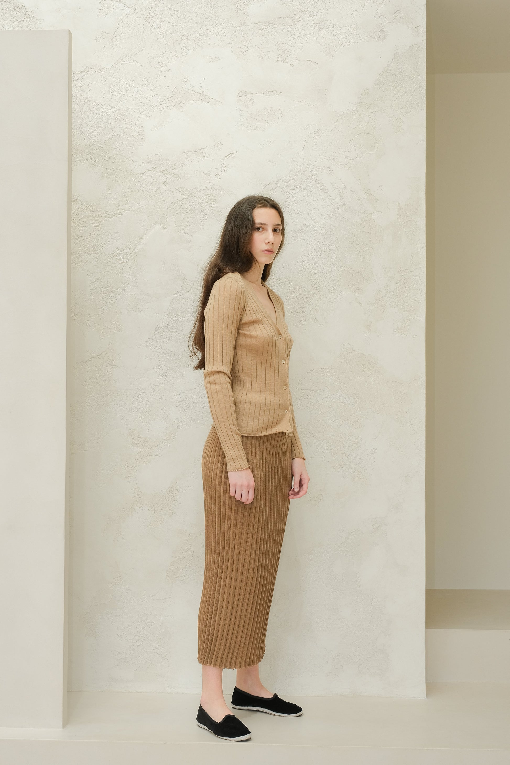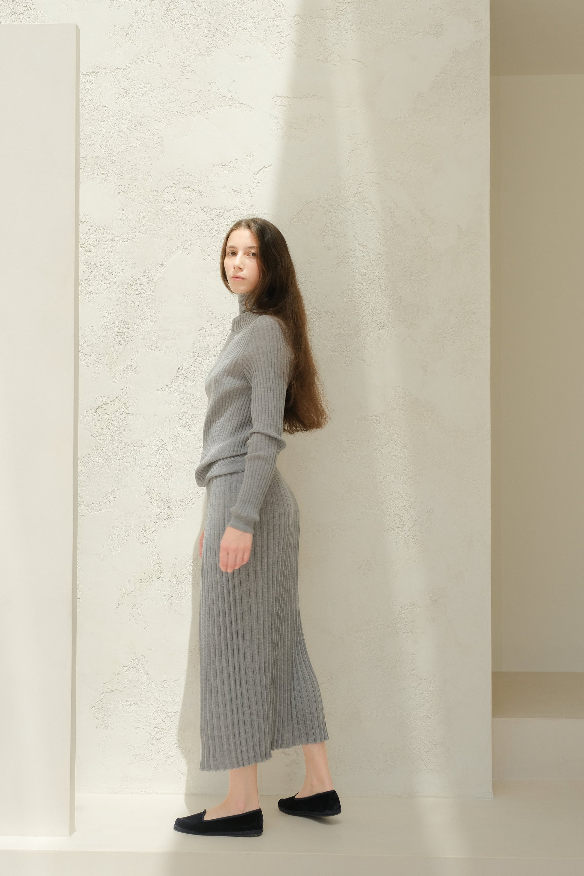 This plissé skirt is knitted in 3D using 100% extrafine merino wool (Cashwool®).