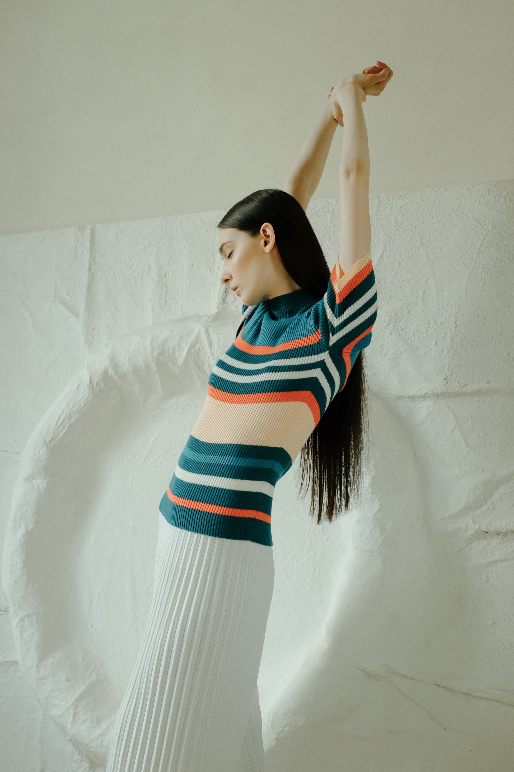 Please note that this style in pictures has been styled as a layer, but the plissé long skirt is a single piece!