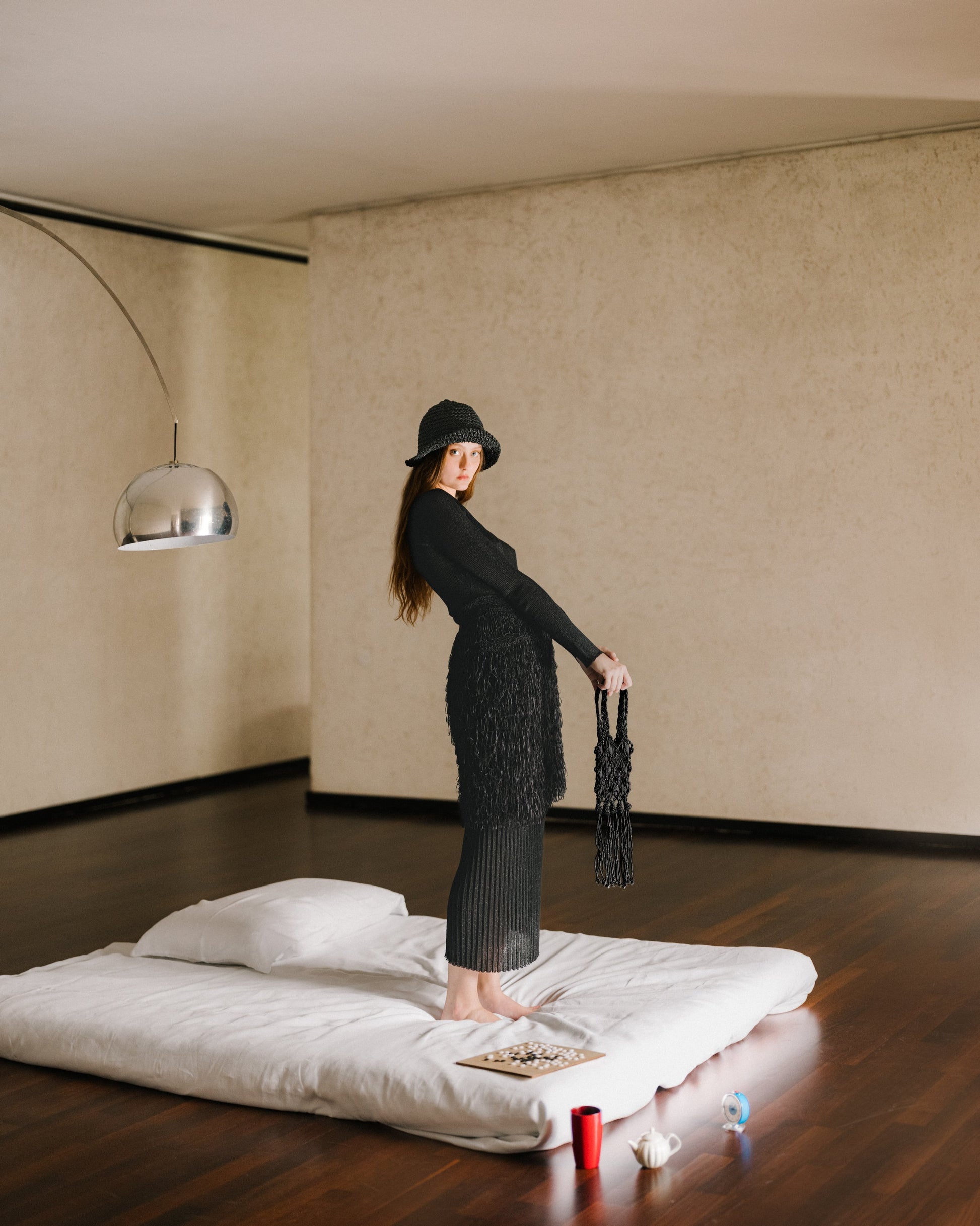 Sleek, luminous, and refined. This ribbed top is crafted for a clean silhouette and soft structure. The V-neckline enhances the décolleté with subtle elegance, while the glitter yarn adds a delicate glow. A versatile piece designed to shift effortlessly from everyday wear to evening moments.